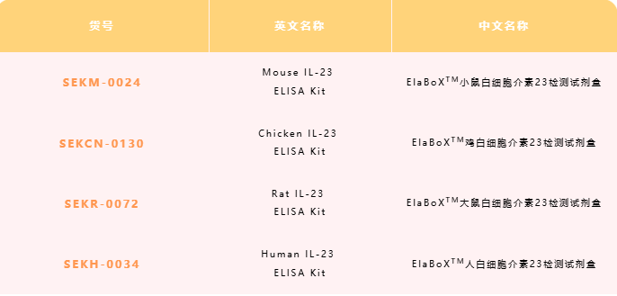 使用产品:SEKH-0034 Human IL-23 ELISA Kit 人白细胞介素23 检测试剂盒